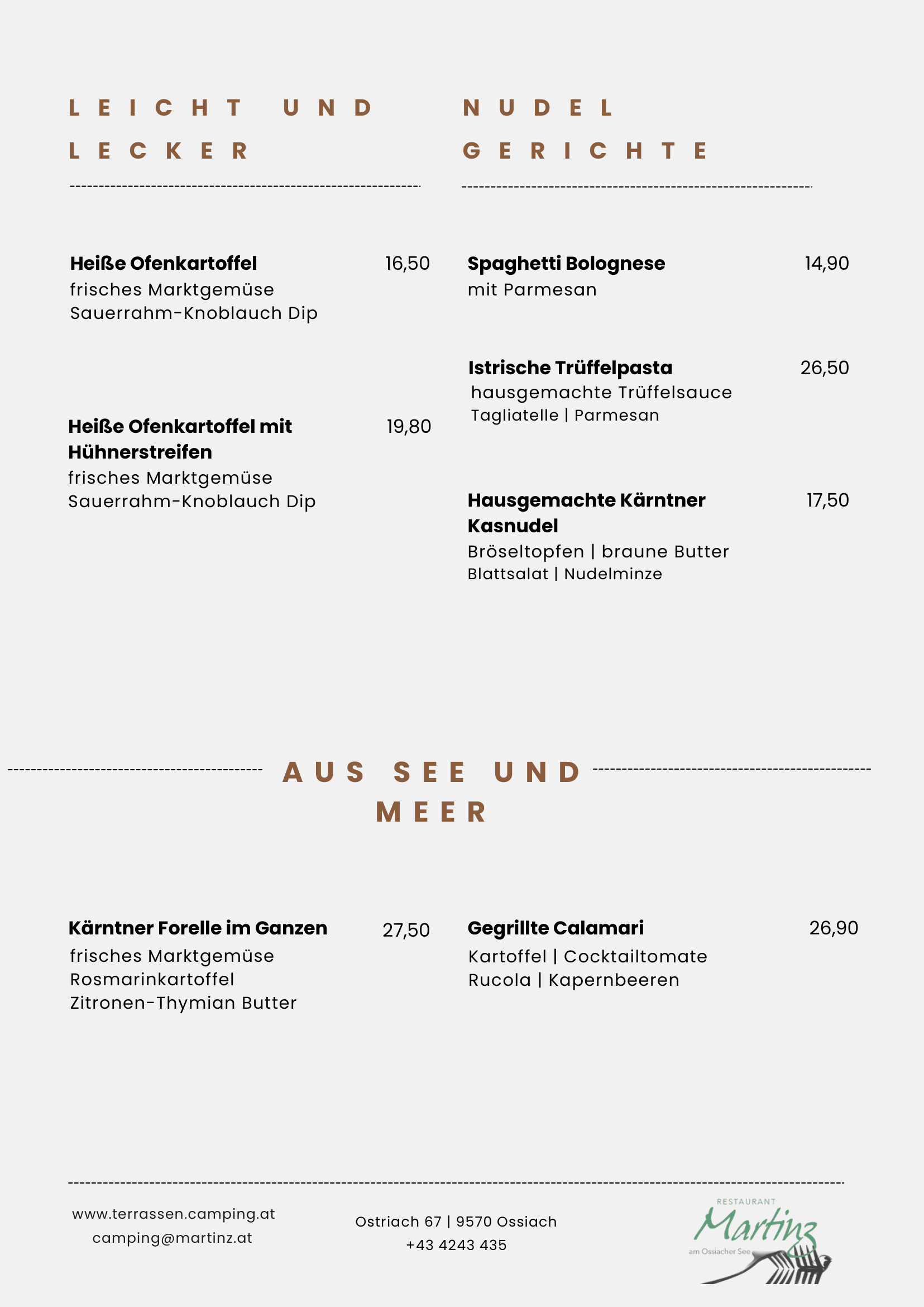 We purchase trout exclusively from local sources, and fine specialties from the Alpe-Adria region harmoniously round out our delicious cuisine.